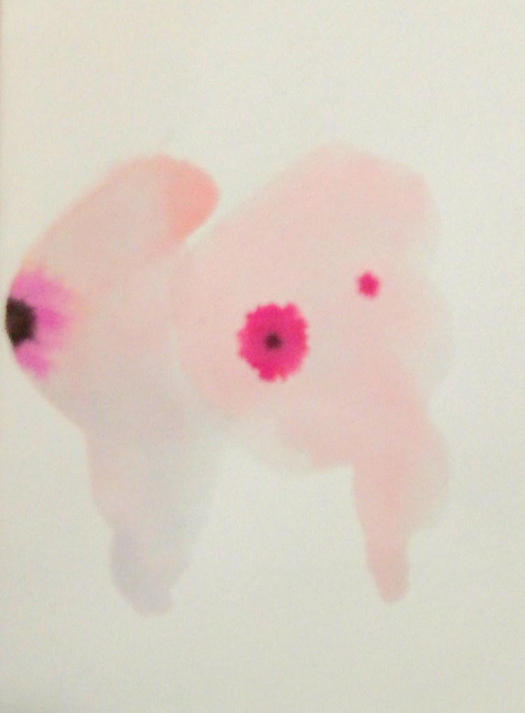 So I hadn’t done any ‘visual work’ for a long time and I found that in order to start I had to start feeling. I mean physically. When I think about putting the tip of the brush to the page, I think about a point of feeling. The point is the point; the point of colour at the tip of a breast or clit. Or, no, I don’t think about it, I feel it, and as soon as I feel it I let the brush touch the paper. To paint is desire ‘but’ I can’t tell if I desire these bodies or if ‘also’ I am them. To make a mark, my brush must be smoothed to a point. Behind the point is a fat bulge of bristles that can hold a great deal in reserve that only lets loose when you want it to, when you handle it a certain way. I put the brush to the paper and the brush makes a point of paint. Paint exists across time which means each point is its own orgasm, and what is shows is both the point of that explosion and ‘also’ its movement across the body, over time. When I paint, I don’t know if I’m looking at this moment or feeling it, if what I’m feeling is my own body or someone else’s, or both at once.