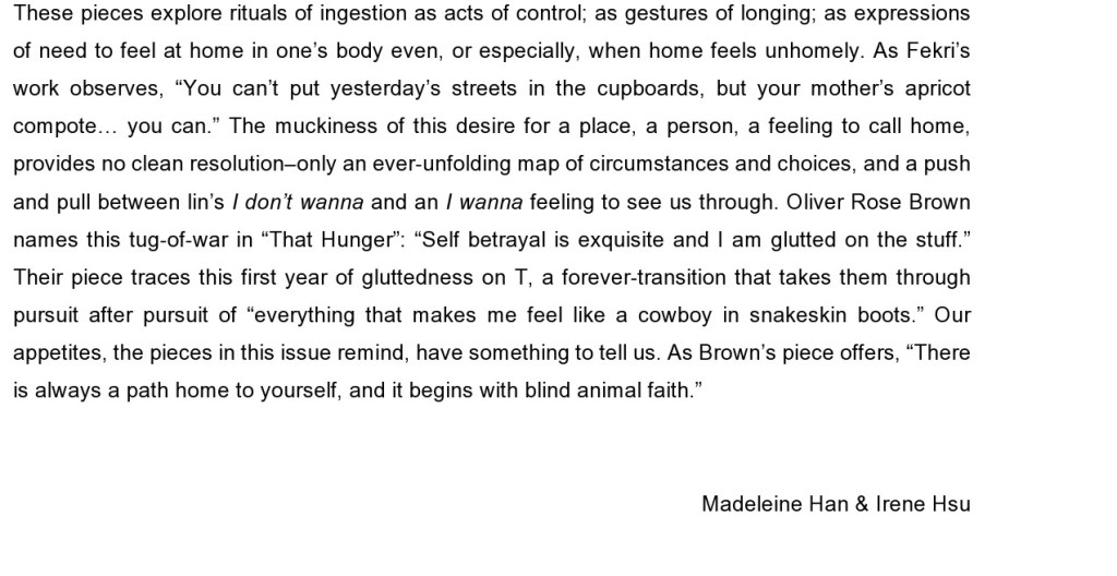 Madeleine Han (she/her) is a writer and researcher. She co-facilitates a high school writing workshop with Irene Hsu in the Bay Area, where they both grew up. Irene Hsu (they) is a writer and researcher with one foot in South Bay and the other in Brooklyn.