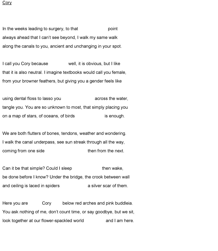 Elizabeth Gibson (any pronouns) is a queer, neurodivergent poet and performer from Wigan, living in Manchester. She has been the recipient of a New North Poets Prize at the Northern Writers’ Awards, and a DYCP grant from Arts Council England, and has had poetry in Atrium, Confingo, Lighthouse, Magma, Popshot, Powders Press, Queerlings, The Storms, and Under the Radar. Elizabeth has been commissioned as a writer-performer by Superbia, Islington Mill, The Portico Library, Manchester Literature Festival, and Yorkshire Dance, and is on Twitter and Instagram as @Grizonne