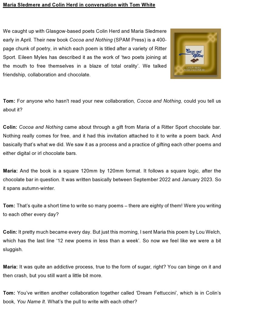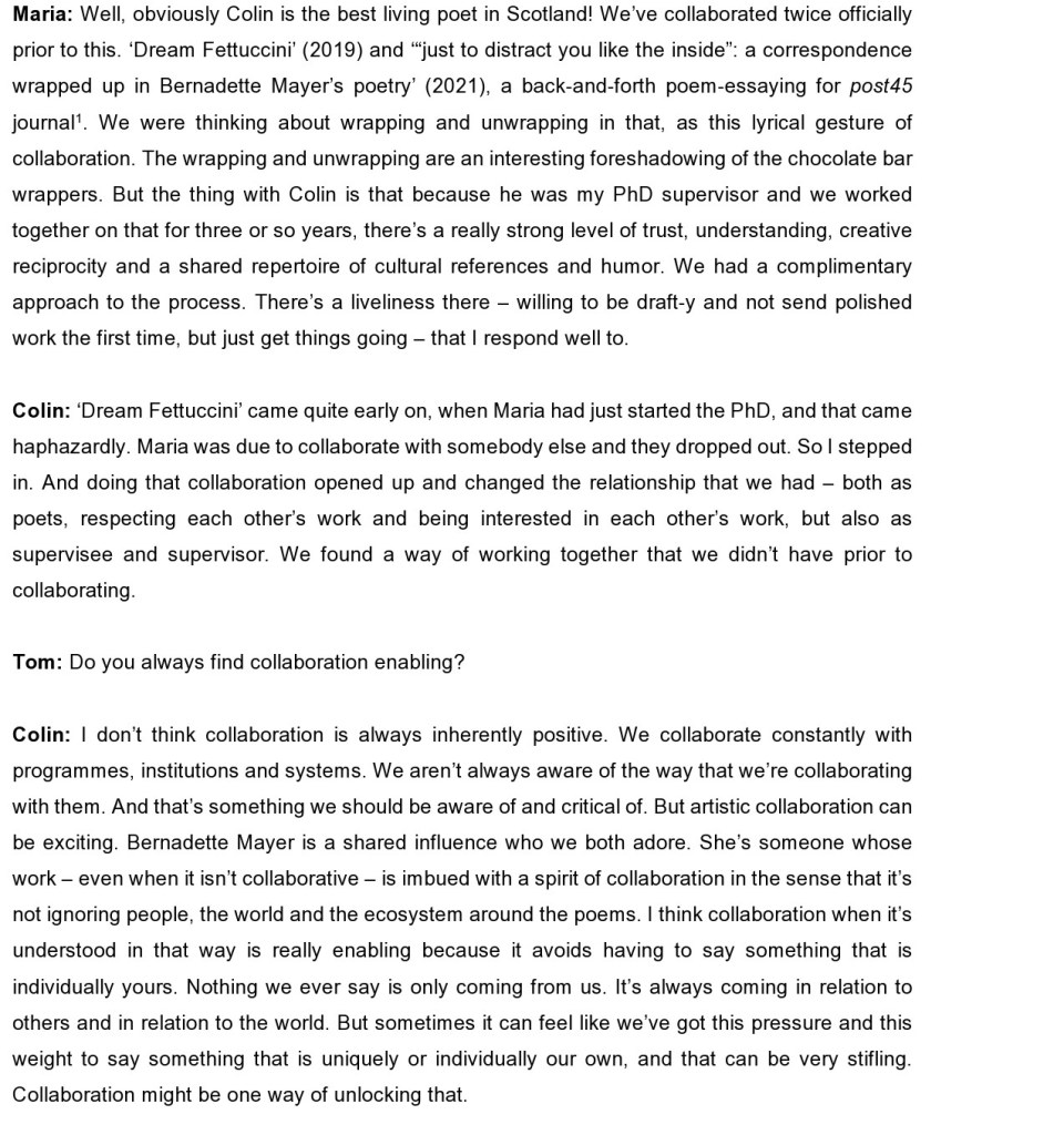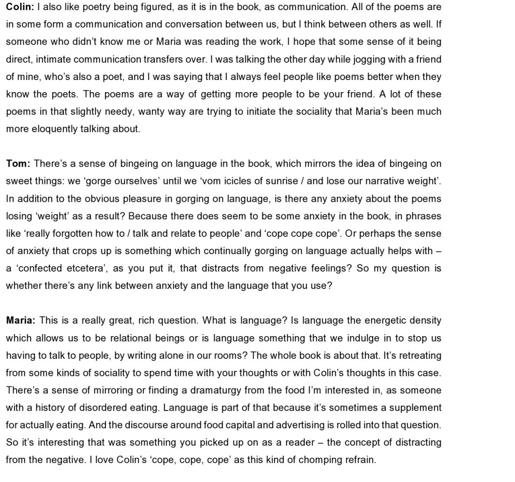 Colin Herd is a poet and lecturer at the University of Glasgow. His recent collections include Click and Collect and You Name It. Colin has published reviews and articles in publications including Aesthetica Magazine, 3:00 AM Magazine, PN Review, and The Independent. Maria Sledmere is a writer and artist. She lectures at the University of Strathclyde and teaches at the University of Glasgow and Beyond Form Creative Writing. She’s also the editor-in-chief of SPAM Press. Some of her recent books include Visions and Feed and String Feeling.